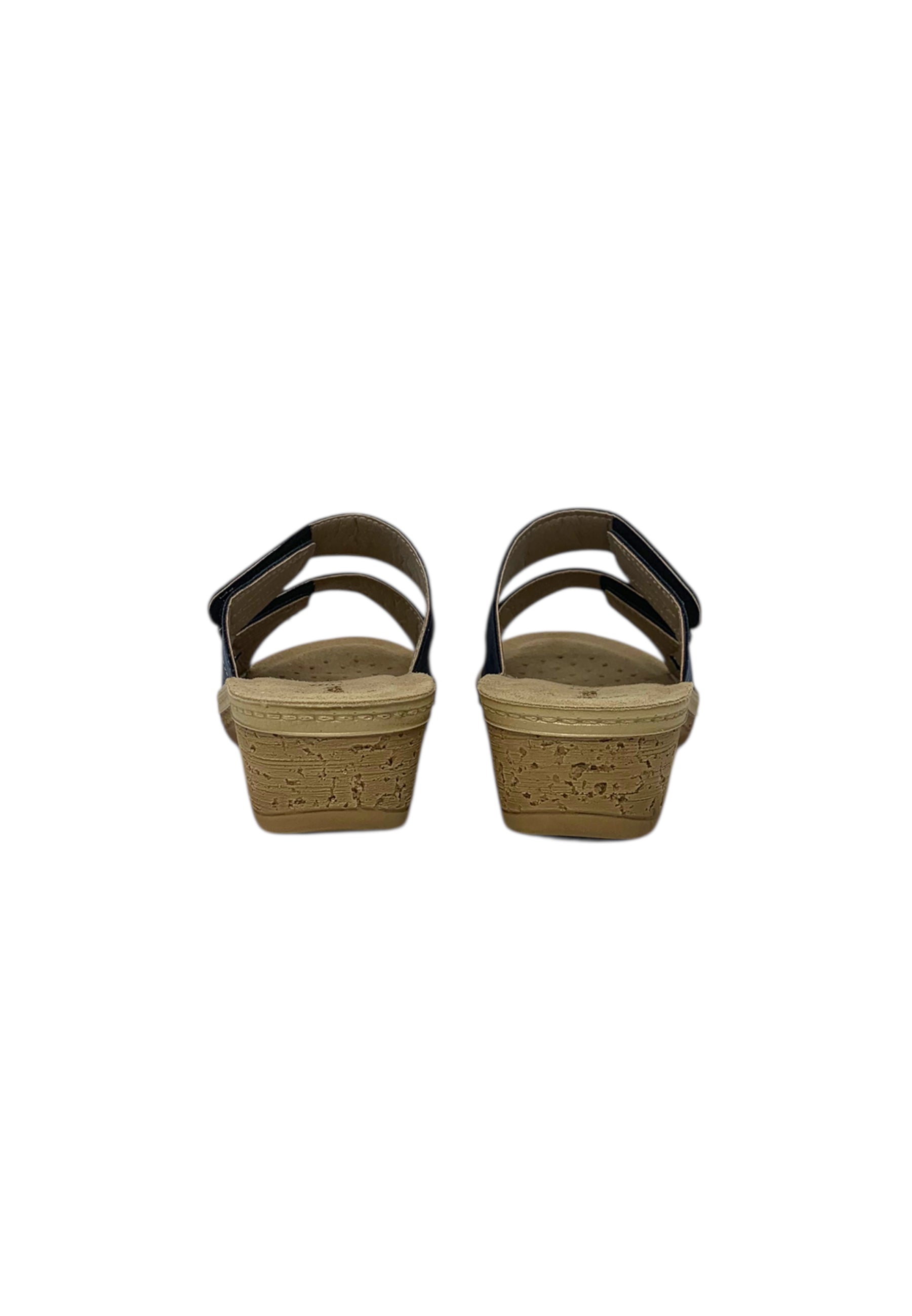 Le ciabatte inBlu sono caratterizzate da un materiale interno ed esterno in sintetico, sottopiede in pelle, prevedono una zeppa di circa 4 centimetri e plateau di 1,5 cm che donano un sostegno naturale alla schiena. La chiusura prevede delle fasce morbide con velcro che si adattano perfettamente alla forma del piede.