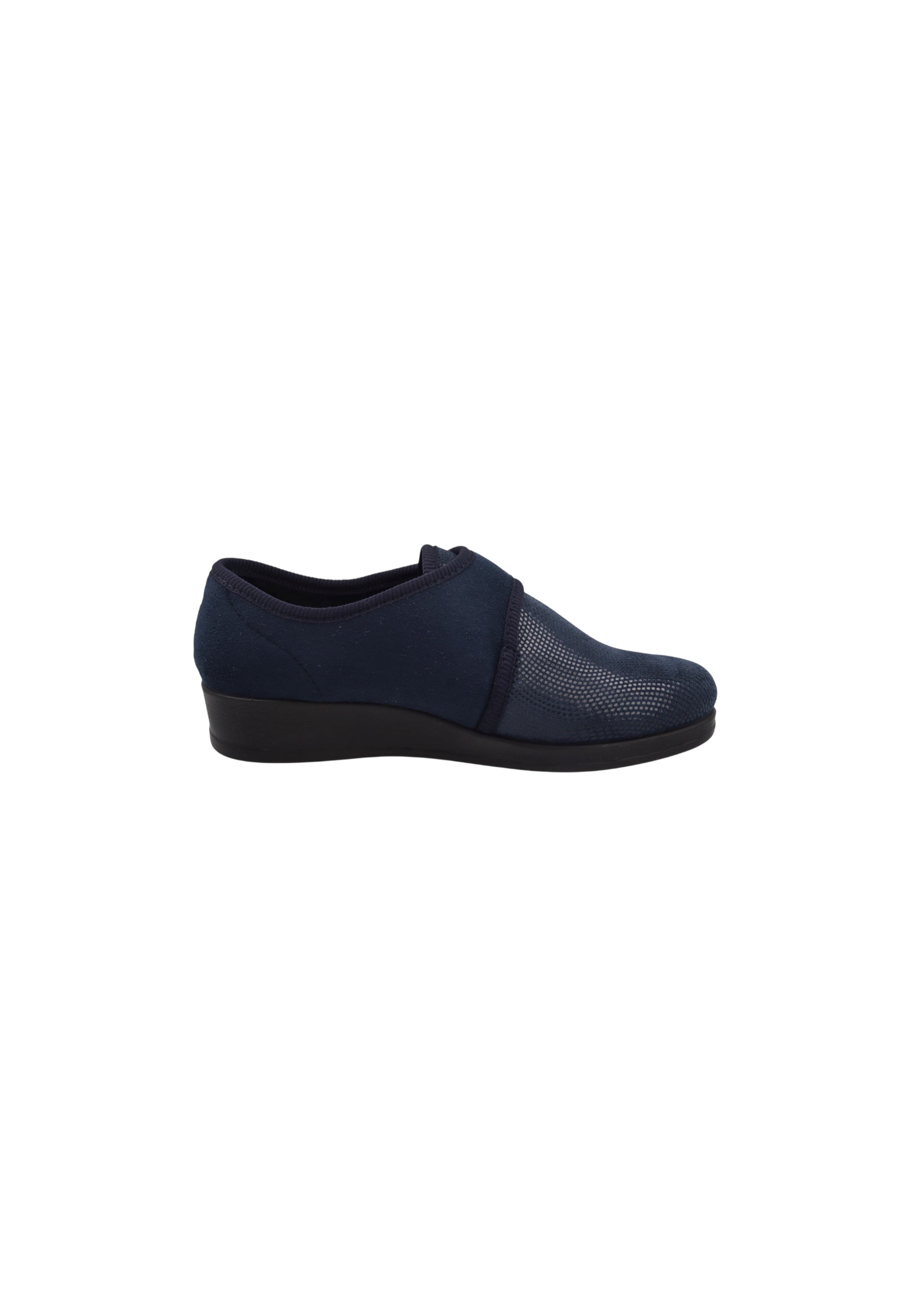 Questo modello è caratterizzato da una tomaia elastica in tessuto in grado di offrire massimo comfort e prestazioni, adattandosi perfettamente al piede. Inoltre, presenta una fodera e sottopiede in tessuto, suola in gomma sintetica con zeppa alta 3 cm circa. Prevista chiusura con pratico strappo.
