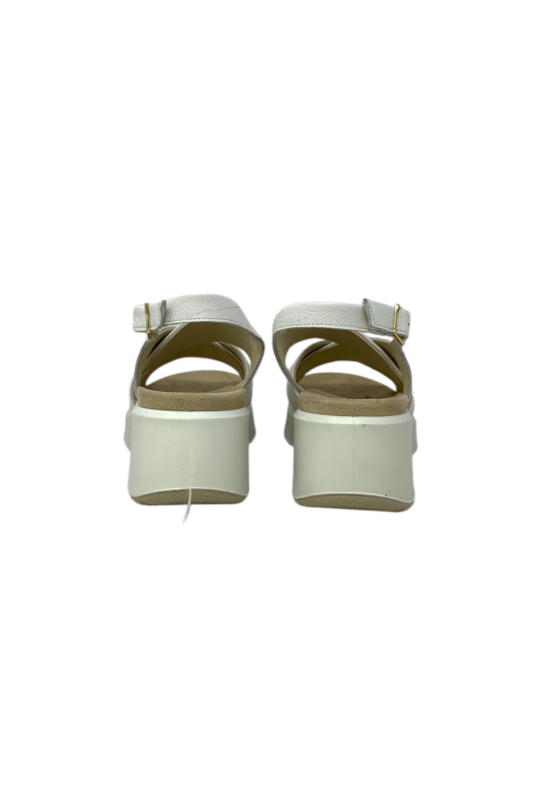Le scarpe sono caratterizzate da un materiale esterno in pelle, fodera in tessuto, sottopiede in pelle, suola in sintetico alta circa 5 cm. Prevedono inoltre una chiusura con cinturino regolabile.
