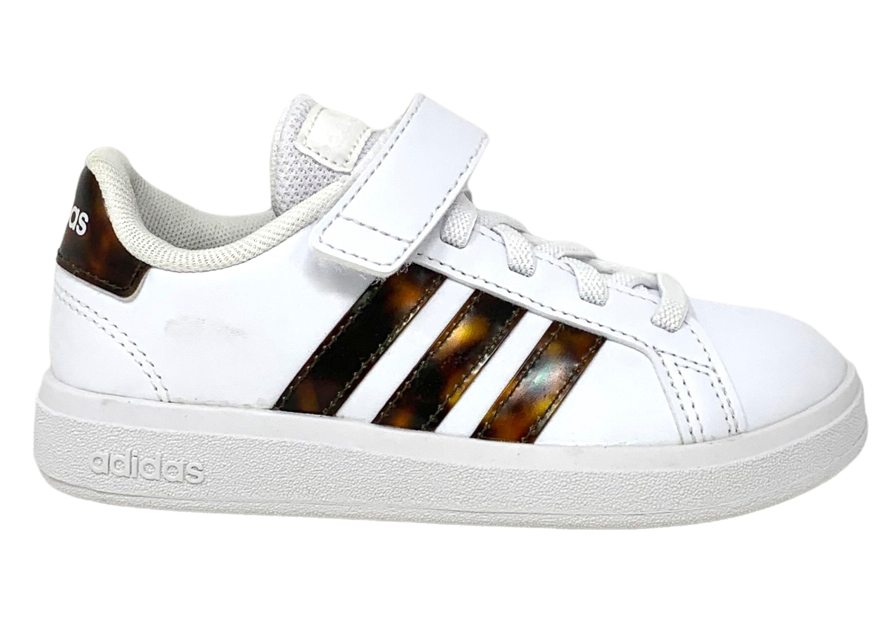 Un look da tennis anni '70 per iniziare a giocare con la moda. Ispirate ai modelli di un decennio iconico, queste scarpe offrono ai più piccoli il comfort e l'ammortizzazione dei nostri giorni. Queste scarpe adidas Grand Court faranno la felicità di bambini e bambine, grazie alla suola robusta e flessibile in gomma preformata che garantisce un supporto ottimale a ogni passo. I lacci elasticizzati e la chiusura a strappo massimizzano la praticità per aiutarli a infilarle e sfilarle in totale autonomia.
